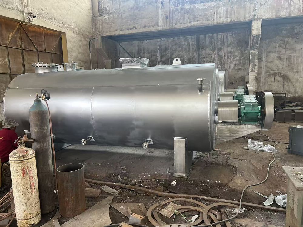 (2)常壓熔煉工序:本工序采用臥式熔煉鍋,采用雙攪拌結(jié)構(gòu),適用于各種動(dòng)物生脂原料。原料由無軸絞籠進(jìn)入臥式預(yù)熱鍋,由物料泵打入熔煉鍋內(nèi),啟動(dòng)風(fēng)機(jī)使熔煉鍋內(nèi)形成常壓狀態(tài),導(dǎo)熱油升溫進(jìn)行熔煉。在常壓狀態(tài)下,原料的熔煉溫度到85度后水份開始蒸發(fā),熔煉度升溫至100度,水份基本蒸發(fā)完全,動(dòng)物生脂原料可快速實(shí)現(xiàn)油、水、渣分離,待物料溫度升溫到120-145度左物料基本熔煉完成,通過視孔觀察油脂狀態(tài)及油渣的干濕度,油脂起泡油渣成硬狀后關(guān)閉加熱閥門、啟動(dòng)油渣分離機(jī)開始放料進(jìn)行油渣分離。跟距原料等級(jí)不同,熔煉時(shí)間一般為2。5-4小時(shí)左右。